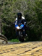 While the actual event was lame, the ride down with friends was priceless. Our buddy Brook neglected to fill up his tank on his gas guzzling 1000 which caused him to run out of gas about a half mile downhill from a gas station. We found a bridge that we could get air on and got a few good pictures of me jumping my loaded up sport bike. We found a tall rail road bridge that we had to talk Adam out of riding across. We all got to see show off Adam drop his bike... twice. Once in a gravel parking lot and once on wet pavement in the parking lot of our motel showing off for a beer filled local. On the way home we rode the famous Blue Ridge Parkway. It's a great road and far less crowded this far south. It was a great weekend with the boys.