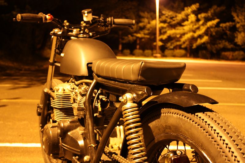 I built this bike for a friend. It was rougher than I thought and needed a lot more work than I was hoping. It turned out good and has a ton of new parts. The gas tank is from a early 1970s Honda ATC 90.