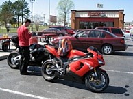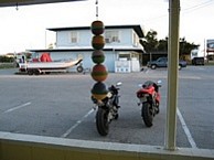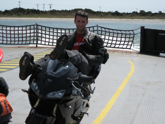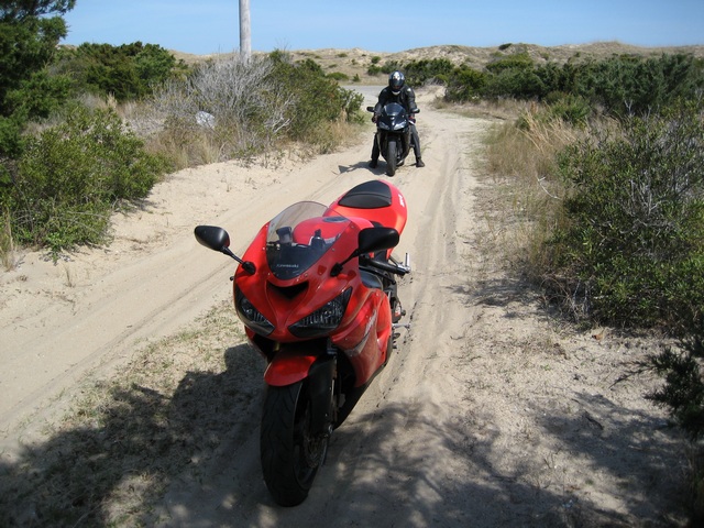 We rode to the Southern area of the Outer Banks and worked our way North. Friday kinda sucked because it was 350 miles of mostly highway and we had a couple delays and a mishap. The mishap was my tail bag coming off on I-95 somewhere around 90mph. Dan was behind me and pulled off to the inside of the highway. My bag fell off and started on the inside of the 3 lanes but managed to cross the road somehow while getting run over a couple times and finally came to rest in the grass on the outer side of the highway. Dan was nice enough to play "frogger" and dart across I-95 to get it. It was pretty much in tact. I laid on it and we went to Wal-mart and I got a backpack and trashed the brand new tank bag. The rest of the day was pretty uneventful.