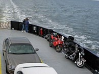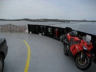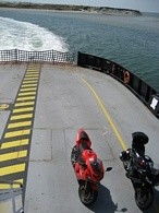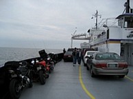 Saturday we got up, got some breakfast at the diner then road an hour or so to the ferry. We were running late so we made up some ground by going 135mph for a couple miles (Dan says 5 miles). Just made it in the knick of time and sat around on the ferry for 2 hours and 15 minutes. The ferry took us to Ocracoke Island and we had lunch at Richards Raw Bar and Beer or something like that. I got a Grilled Cheese kids meal that came with a Frisbee, score! Then we headed up north to the next ferry. It was only 45 minutes long and the weather was better on this one.
