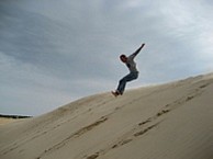 We cruised North towards Nags Head, but stopped at the world famous Hatteras Light House. Got to our next run down motel and chilled out. Oh then we went to the big sand dune and wondered around. Made fun of some inbread kids that were there and jumped off the side of the dune. Then we watched a little I-Robot on cable, showered and hit the night life. Nags Head was dead. We couldn't find a decent place to eat. Some drunk lady told us a good place to go. It was OK. I was tired and I think Dan was too. So we left there and headed back to the motel. Then got up Sunday and rode home.