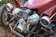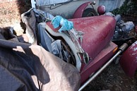 This vehicle belongs to the the father of a friend. It was made in England and was built to resemble the old Morgan 3 wheeled cars. It's currently in her garage near my house. I plan to go help her and her brother fix it up.